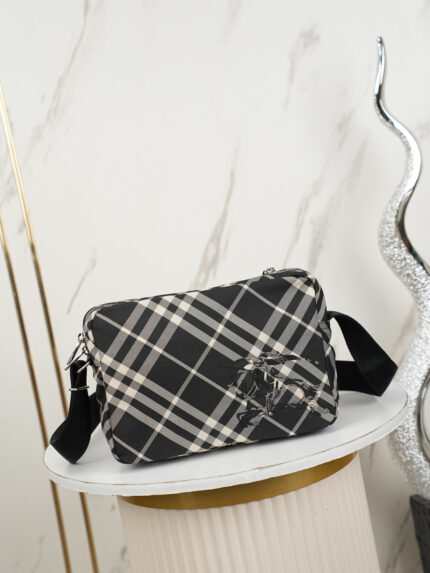Burberry Check Camera Bag with Equestrian Knight Emblem Black Style