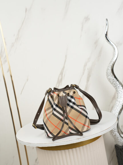 Burberry Check Drawstring Bucket Bag Mini Beige Style