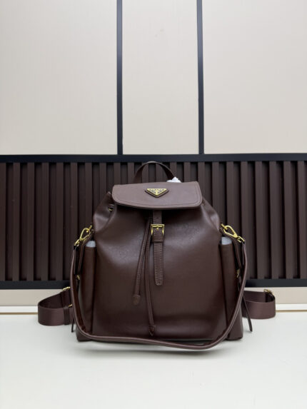 PRADA 1A080 Sheepskin New Backpack in Dark Brown