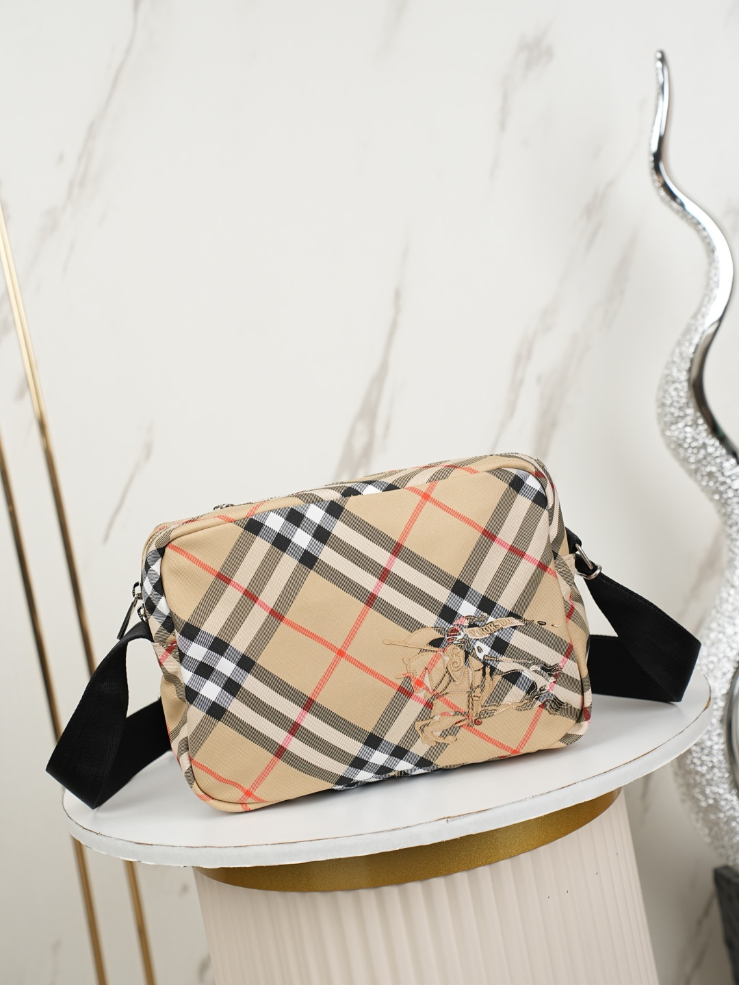 Be the first to review “Burberry Check Camera Bag with Equestrian Knight Emblem Beige Style” Cancel reply