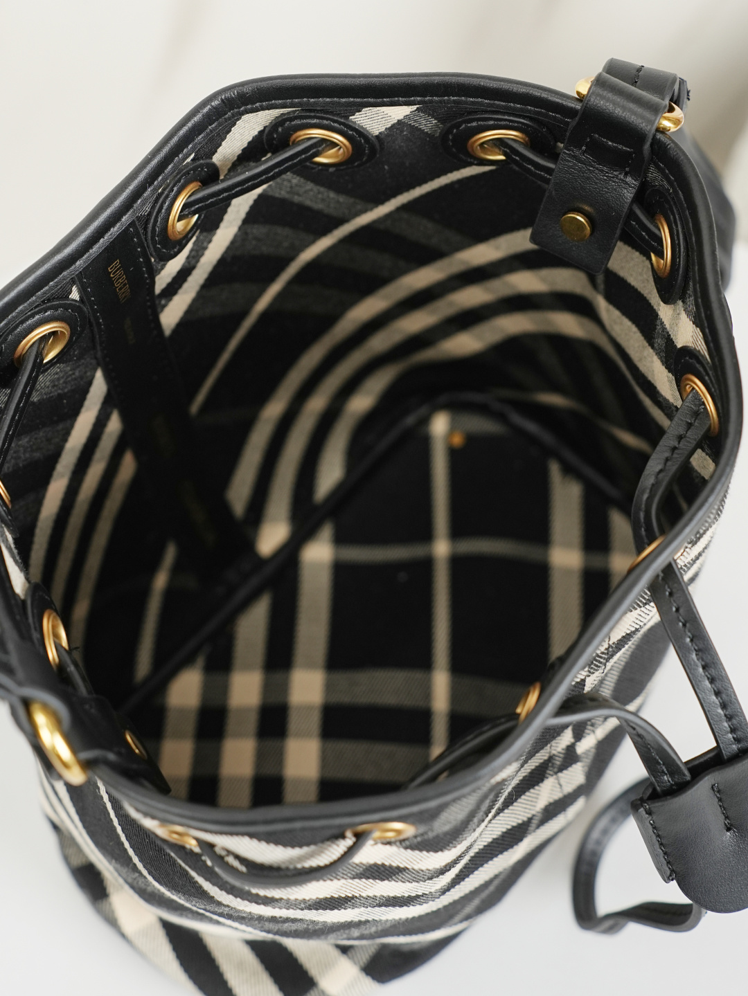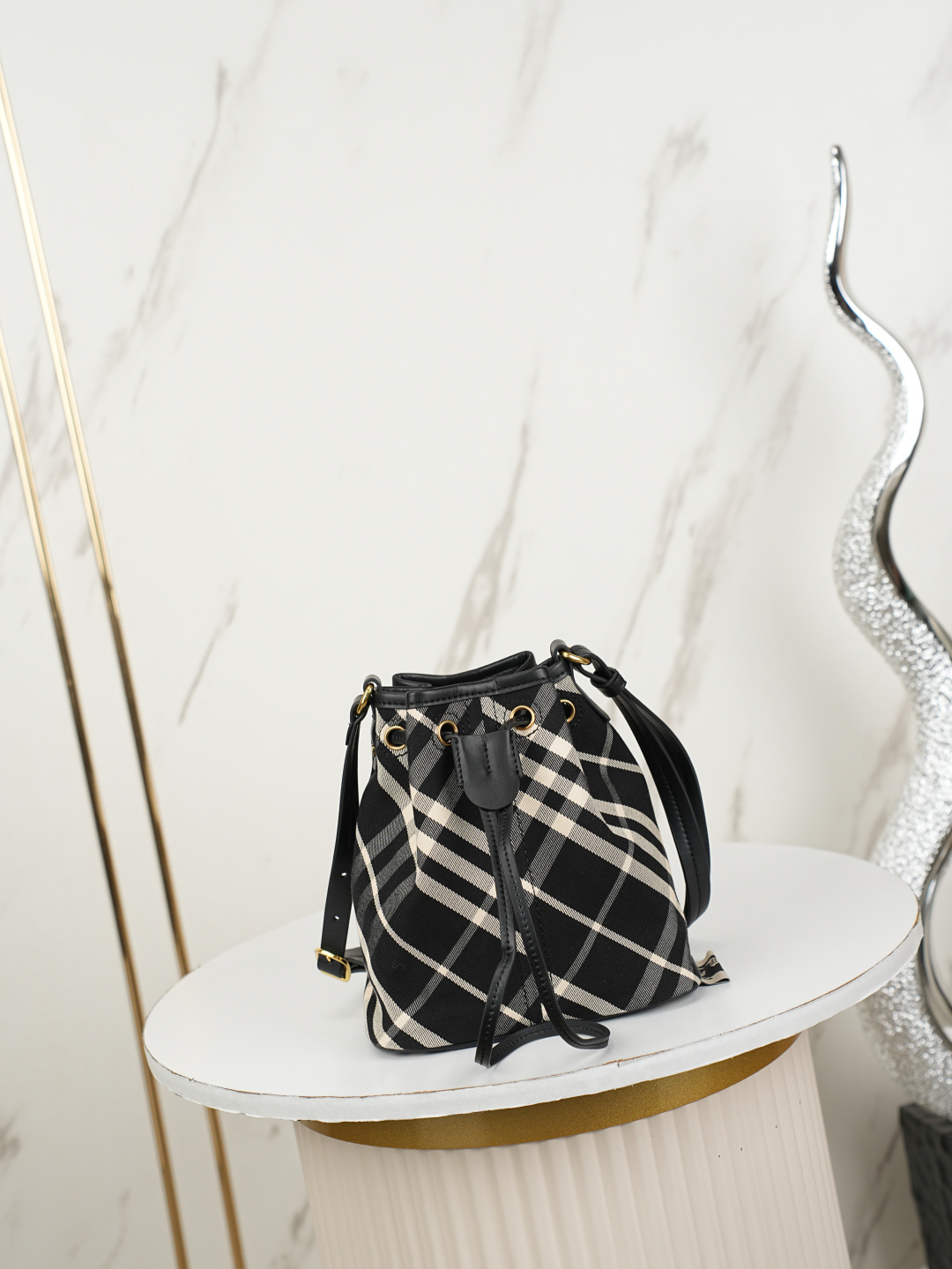 Burberry Check Drawstring Bucket Bag Mini Black Style