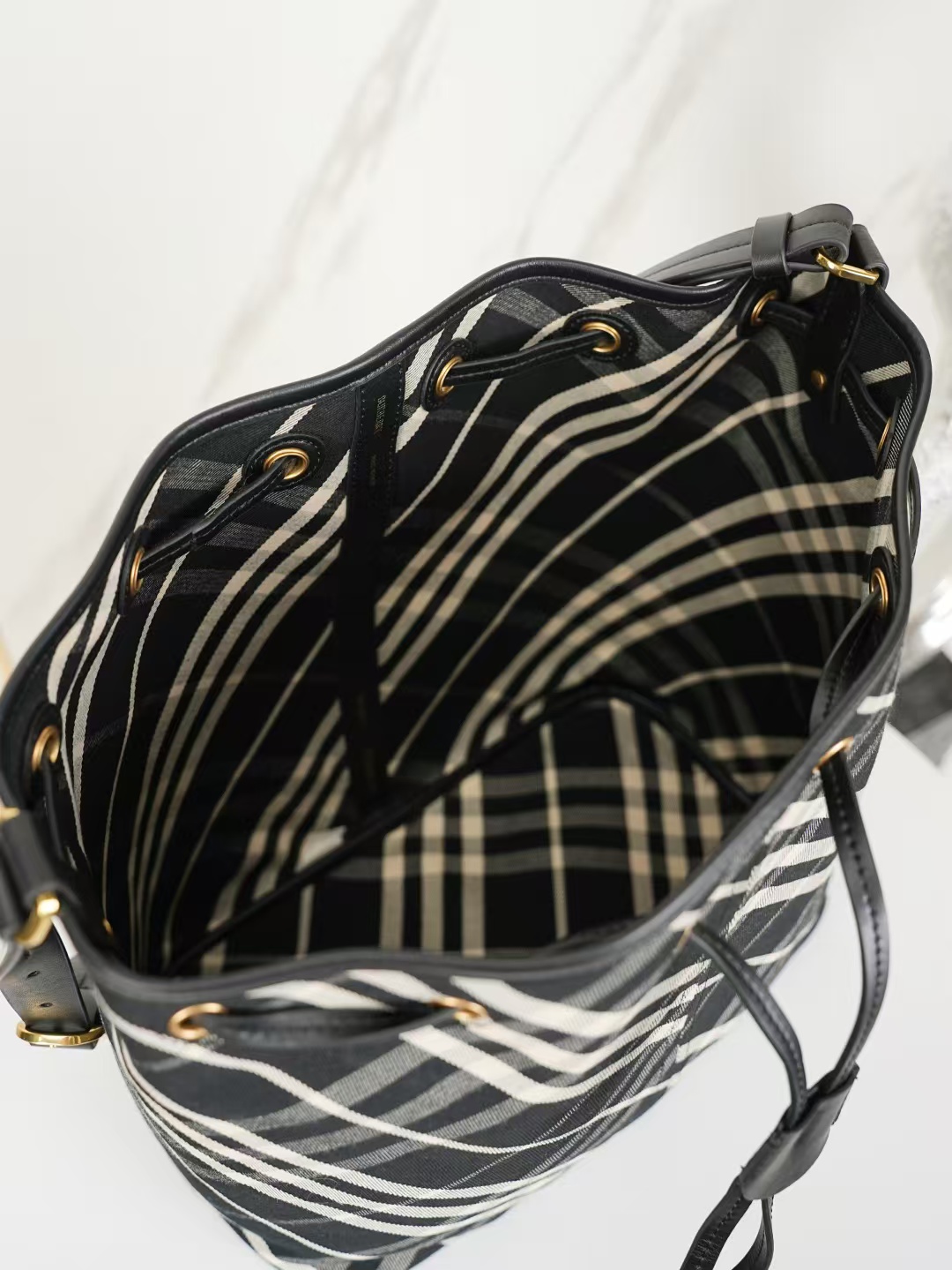 Burberry latest drawstring bucket bag Black Style