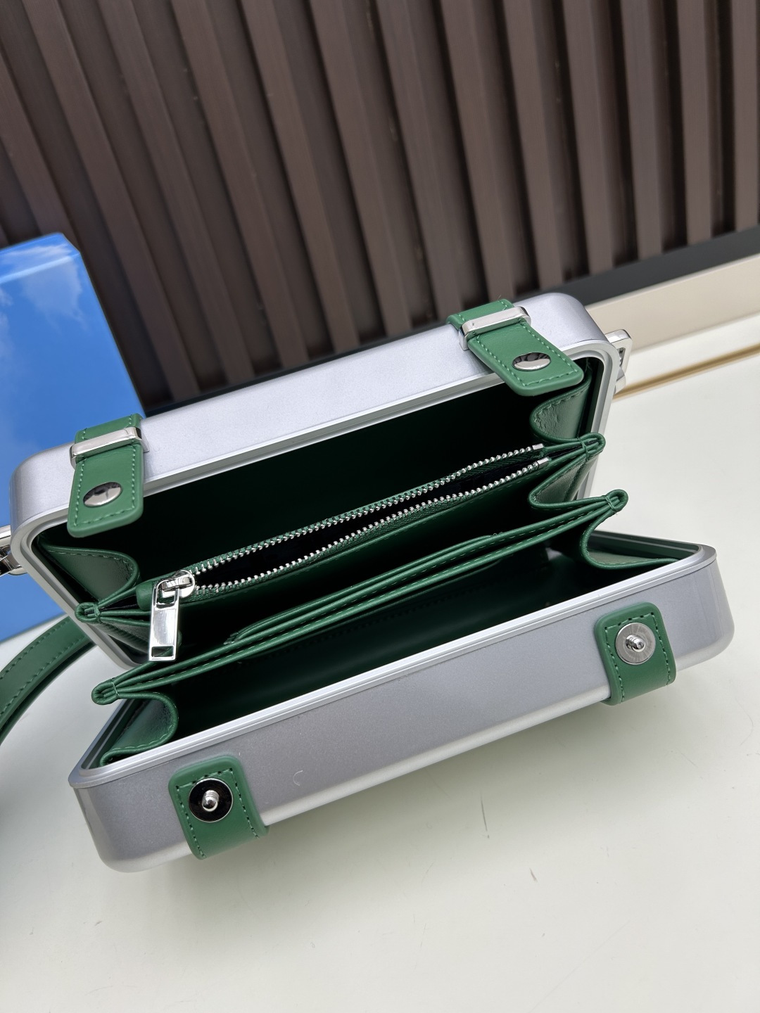 DIOR & RIMOWA Limited Edition Mini Trunk Bag Silver with Green Strap