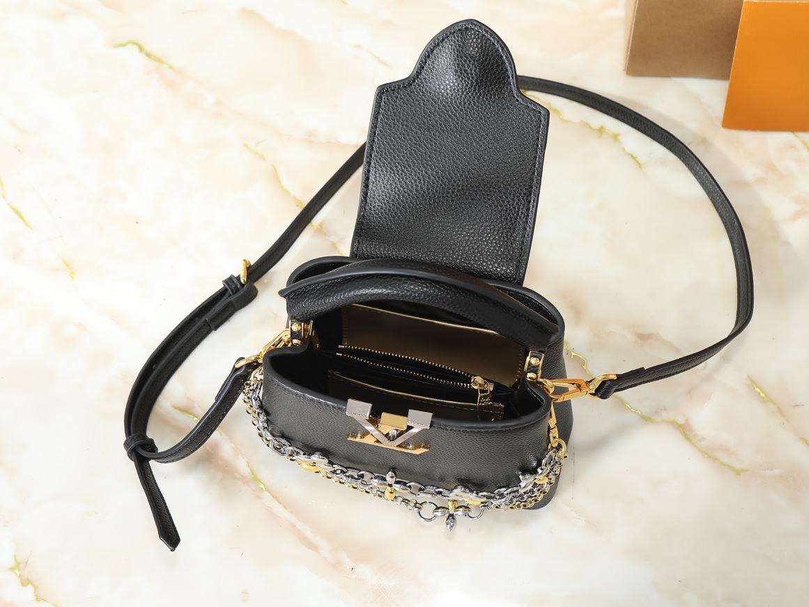 Be the first to review “LOUIS VUITTON Capucines Small Size Handbag Black Gold Logo” Cancel reply