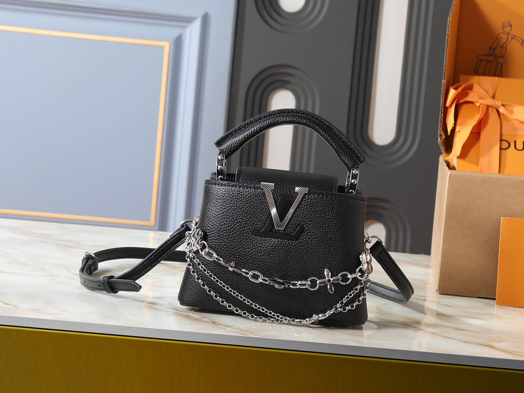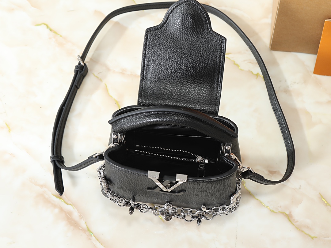 Be the first to review “LOUIS VUITTON Capucines Small Size Handbag Black Silver Logo” Cancel reply