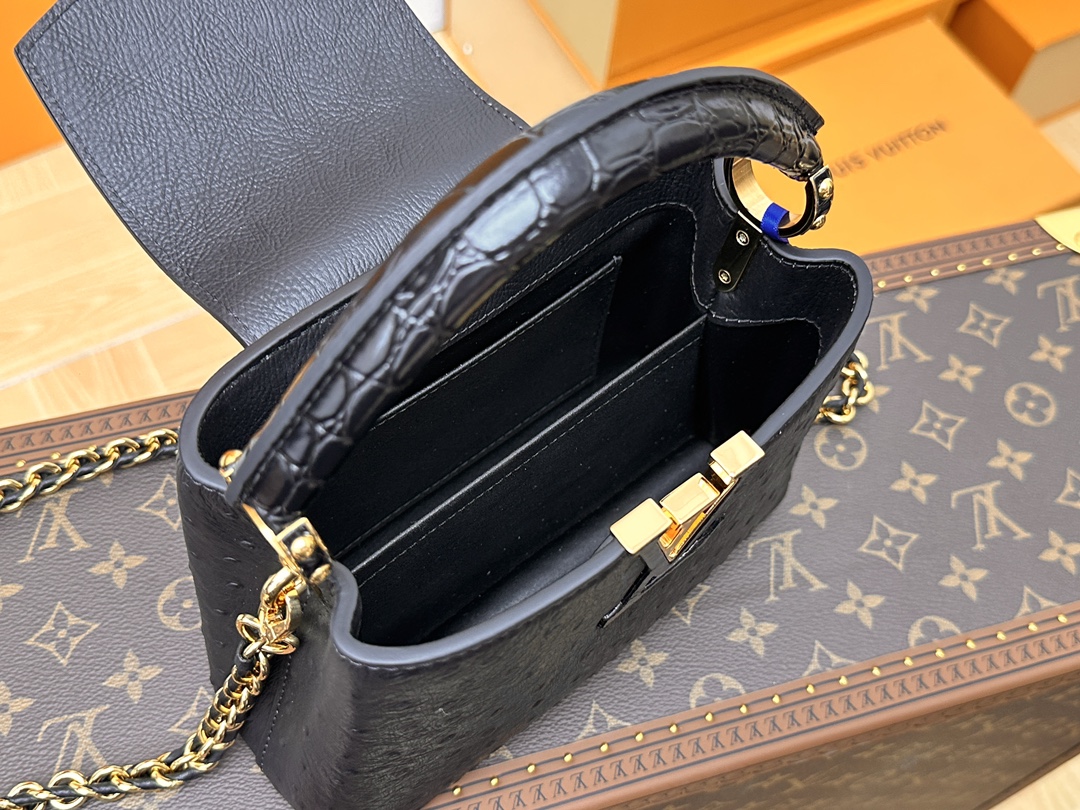 LOUIS VUITTON M83116 Black CAPUCINES Small Size Ostrich Pattern with Woven Chain Handbag