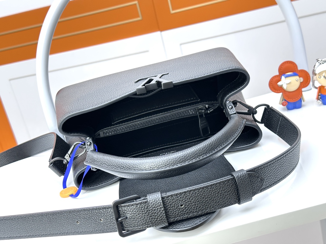 LV Black Top Grade Original Leather Capucines Medium Handbag