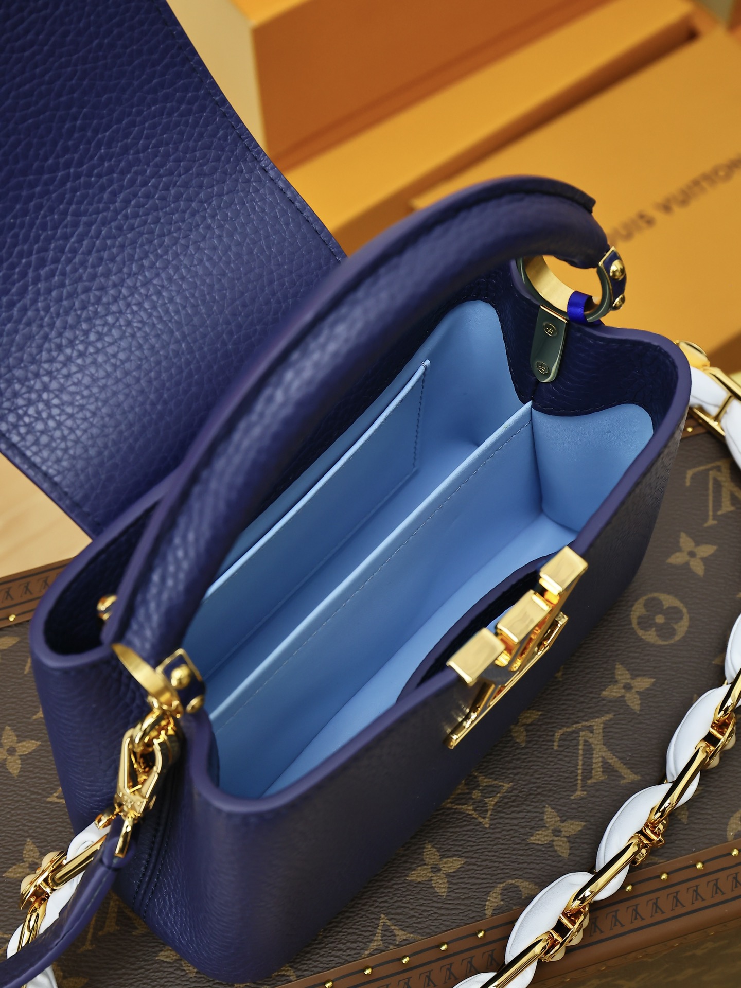 Be the first to review “LV M23363 Royal Blue with Gold Tone Hardware Capucines BB Handbag Small Size”