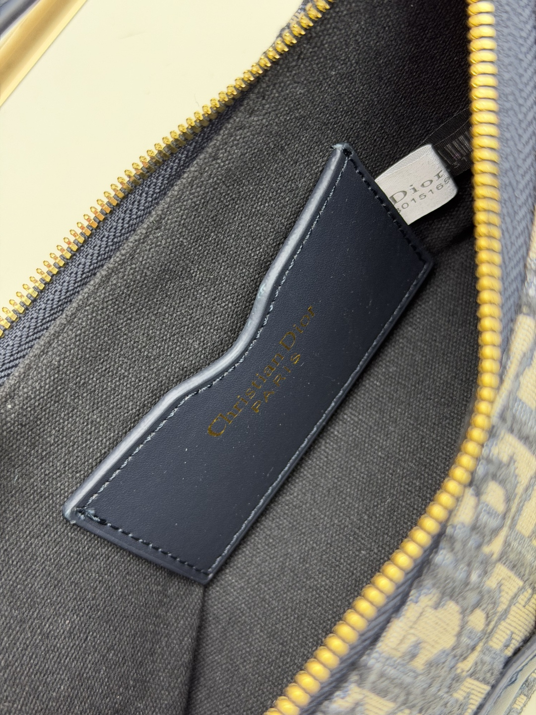Comes with an adjustable leather shoulder strap for graceful crossbody wear. Features a CD logo on the front, zipper closure, and an interior compartment with 1 card slot.