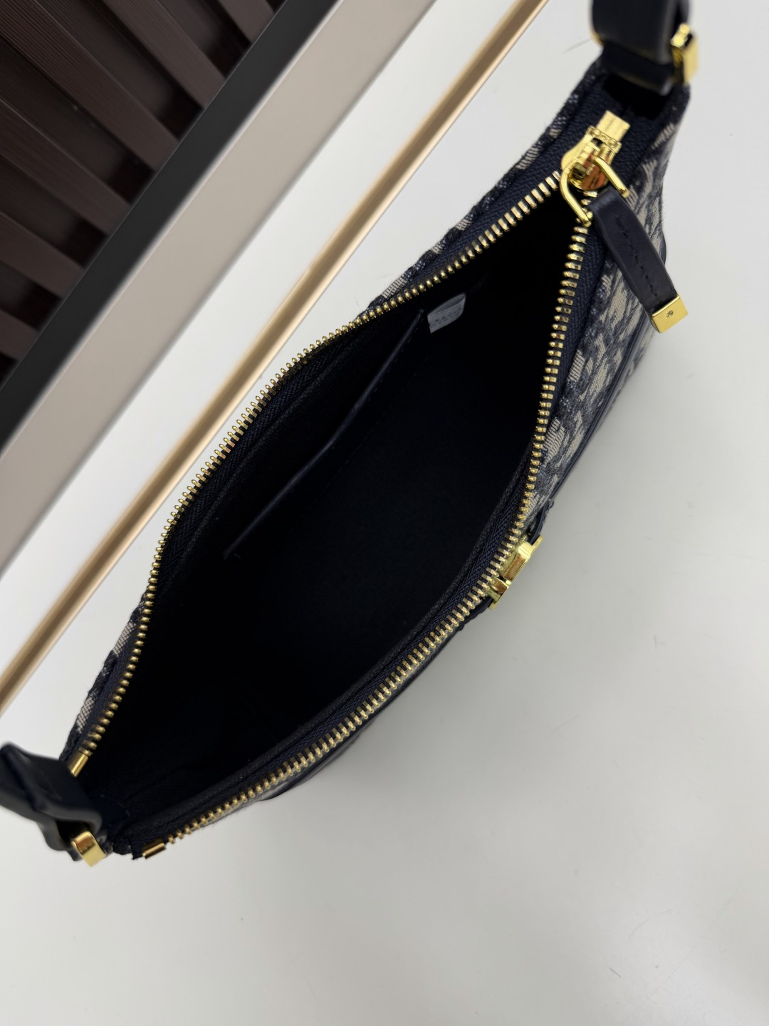 Comes with an adjustable leather shoulder strap for graceful crossbody wear. Features a CD logo on the front, zipper closure, and an interior compartment with 1 card slot.