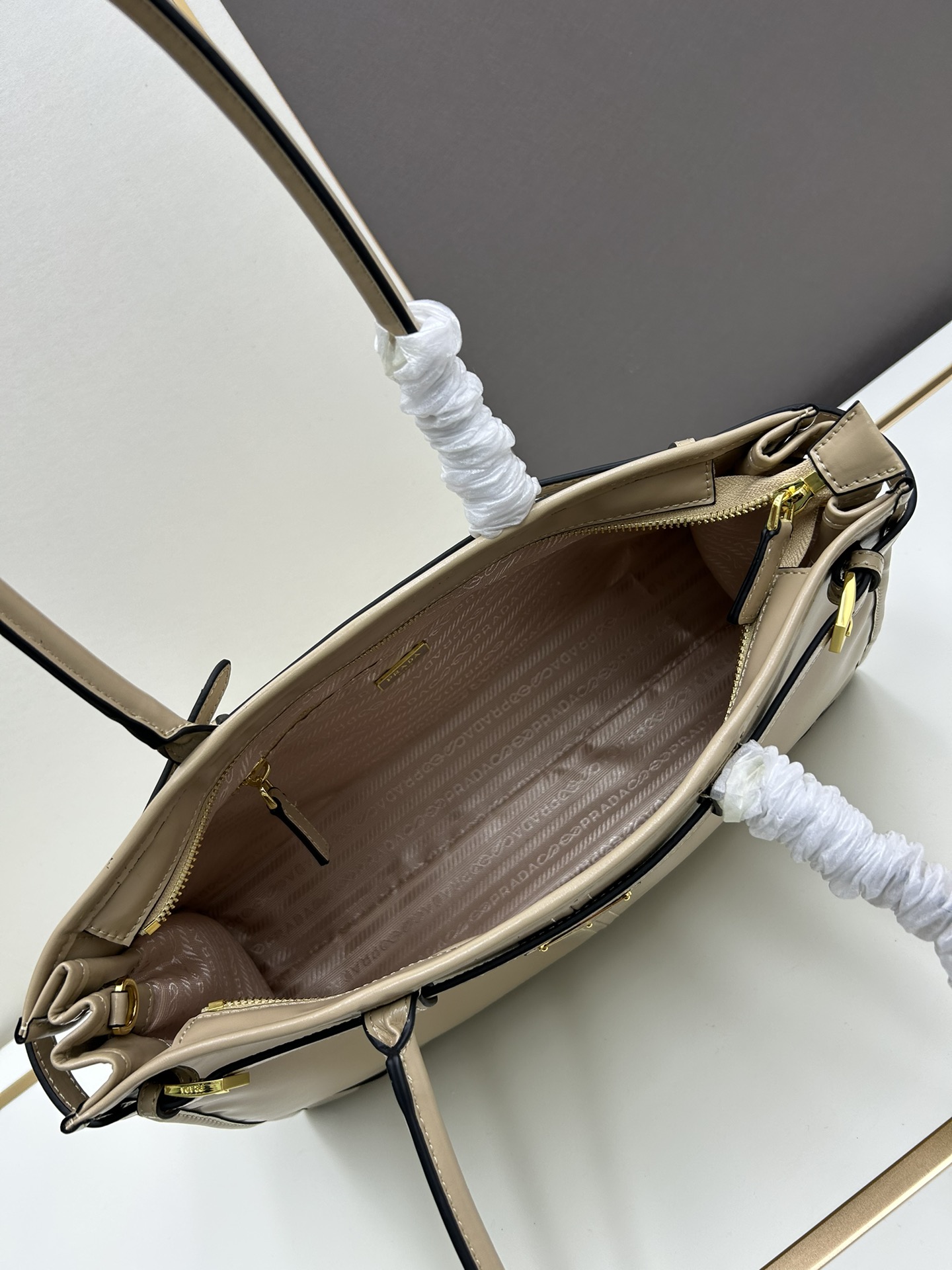 PRADA Soft Lux Tote & Crossbody Bag Light Khaki