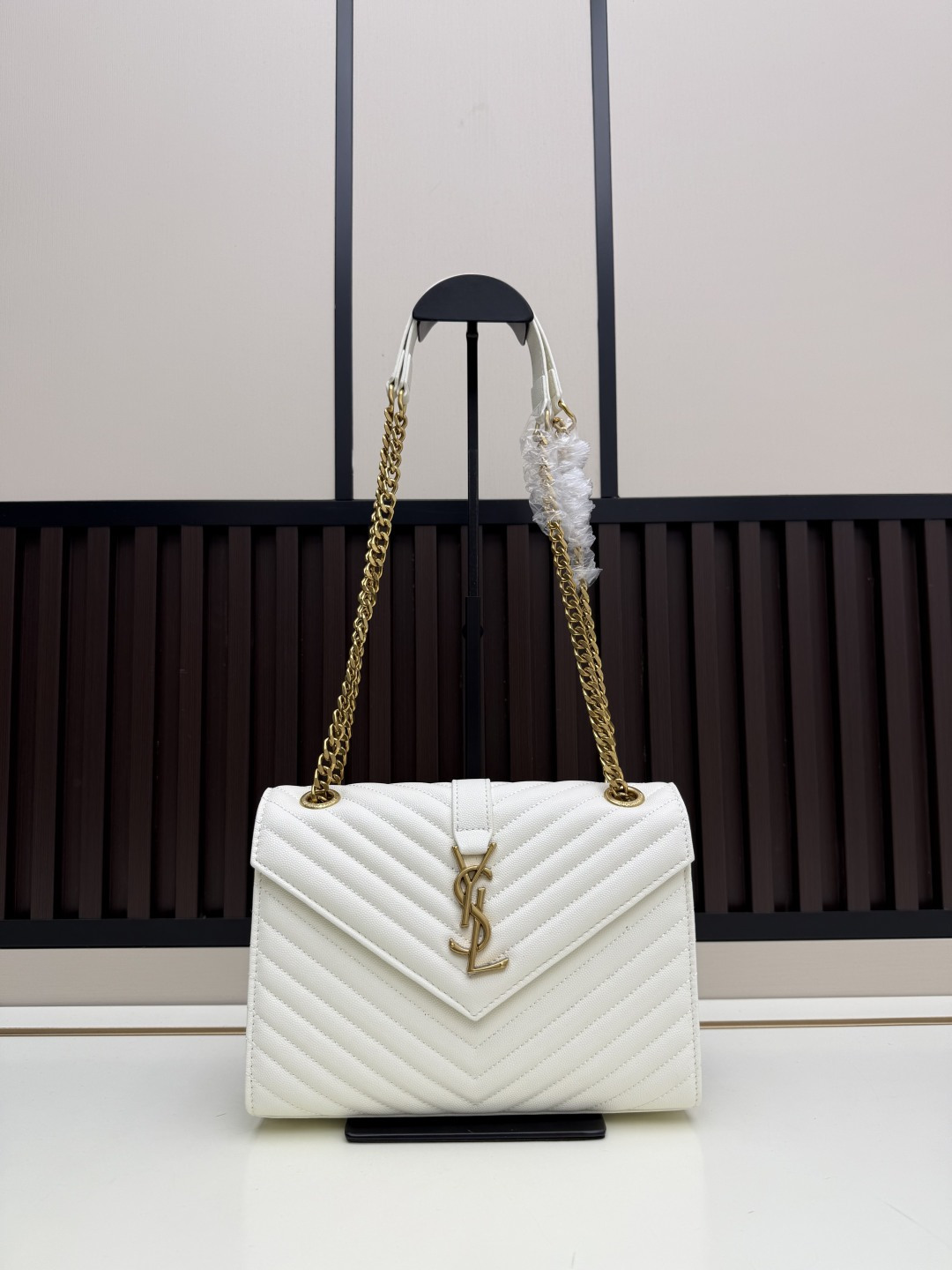 YSL Medium Size Caviar Chain Bag Chic and elegant White